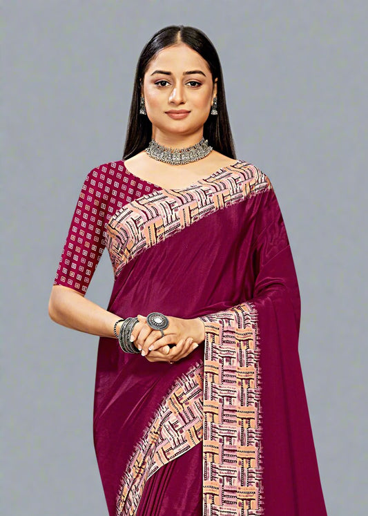 Ajarkh Printed Maroon Pure Modal Silk Fabric