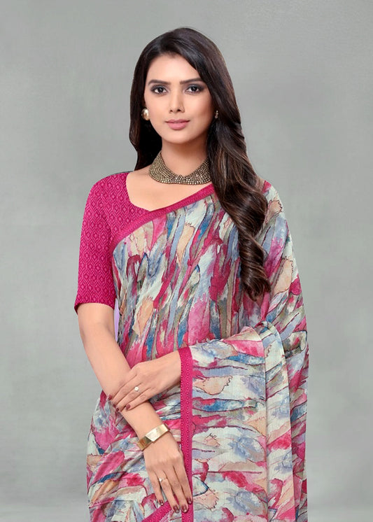 Abstract Patterned Multicolor Chiffon Saree with Solid Border