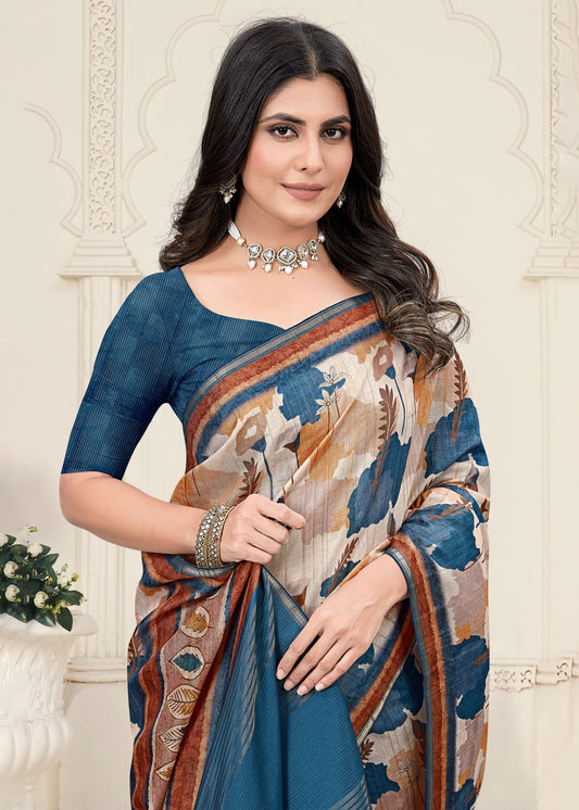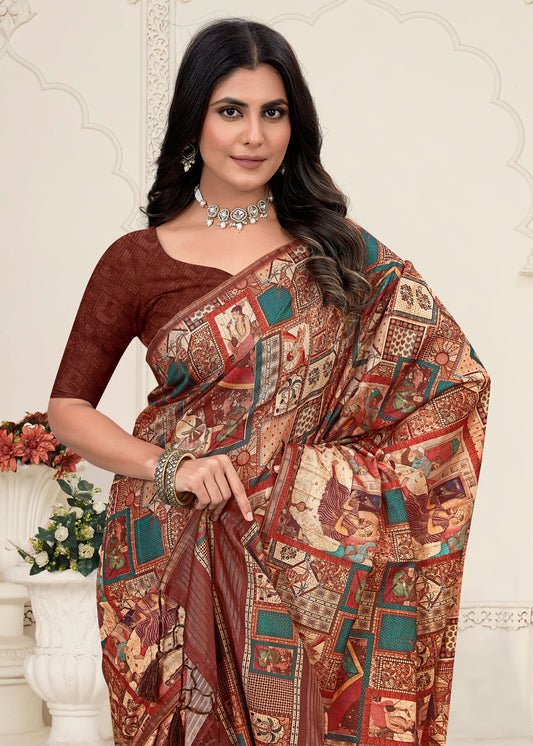 Georgette Fabric Saree with Elegant Brown Floral Prints