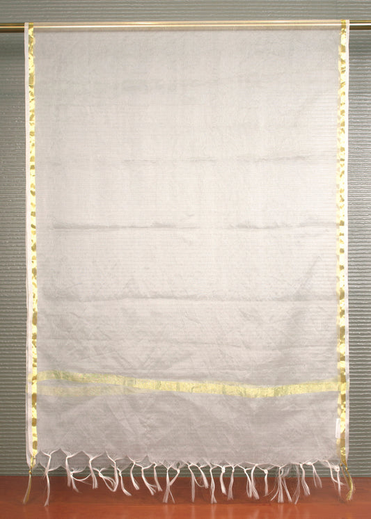White Dyeable Handwoven Organza Dupatta with Zari Border and Tassels
