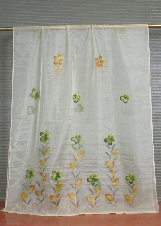 Fine Organza Dupatta in Light Green Adorned with Hand-Painted Blooms and Subtle Foil Highlights