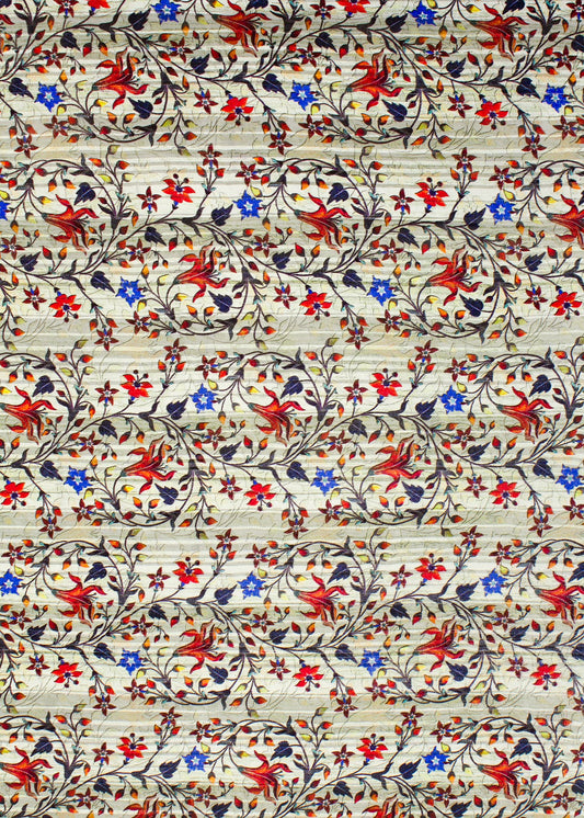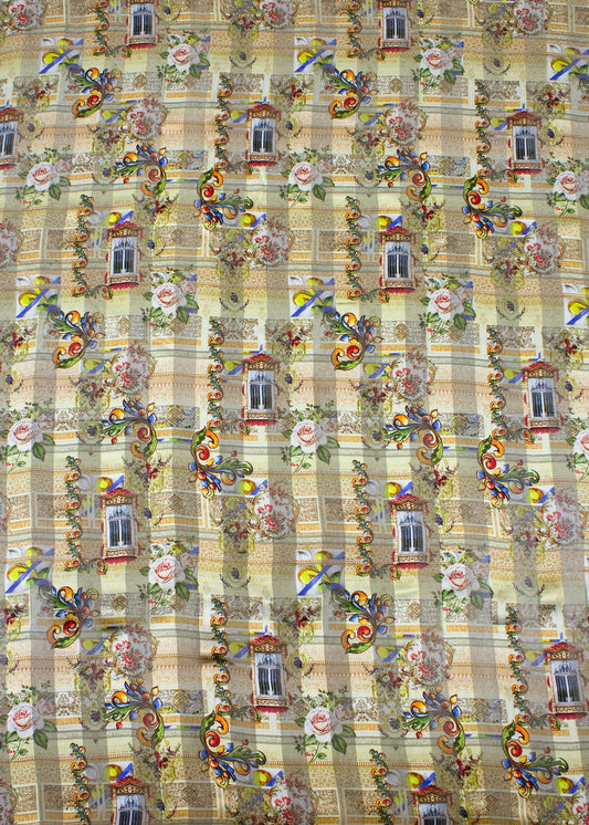 Digitally Printed Pure Georgette Satin Pattern Fabric with Multicolor Ethnic Motifs