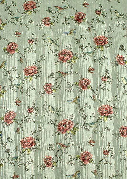 Soft Mint Green Georgette Satin Pattern Fabric Featuring Floral Digital Print