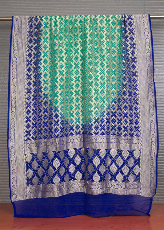 Handcrafted Sky Blue Georgette Dupatta Showcasing Classic Bandhej, Woven Zari Border and Jaal Motifs