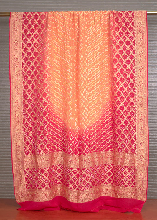 Rich Raspberry Georgette Bandhani Dupatta with Exquisite Zari Woven Border and Jaal Work