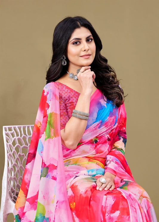 Pink Georgette Saree with Sophisticated Abstract Digital Print Accents