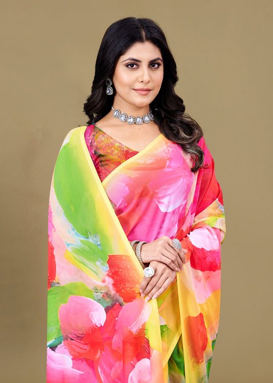 Vibrant Multicolor Georgette Saree Showcasing Stunning Abstract Digital Prints